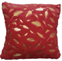 A romantic rose-red fur cushion embellished with golden foil leaf patterns. The warm tone combined with shimmering gold adds elegance and artistic charm, making it perfect for festive and luxurious interiors.